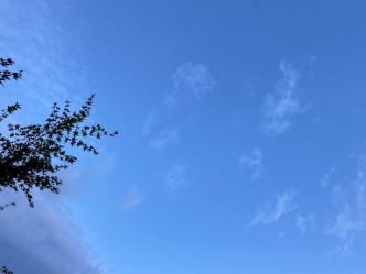 今朝は雲の切れ間から広く青空が見えています。やや風の強い朝です。