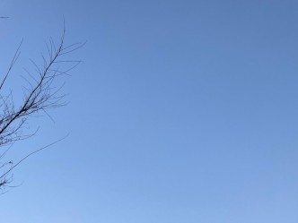 今朝は広く青空が見えて、朝日が射してきています。地面に雪が薄く積もり、冷え込みの厳しい朝です。