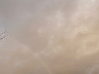 今朝は厚めの雲が広がっていますが、雲の間から陽が射しています。