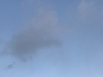 今朝は所々雲の浮かぶ空で、雲の間から朝日が射してきています。