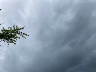 深夜に雨が振り、今朝は雨が止んで雲が広がっています。