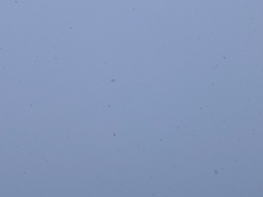 灰色の雲に覆われ、しんしんと雪が降る朝