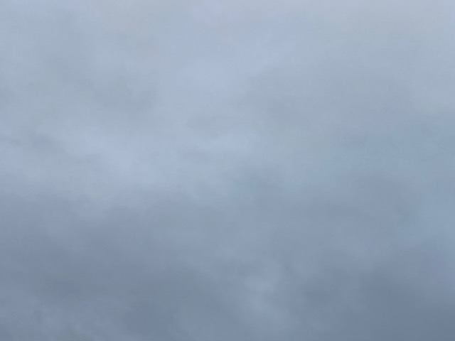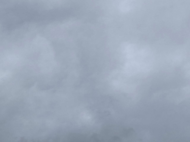 灰色の雲に覆われ、ポツポツと雨が降る朝