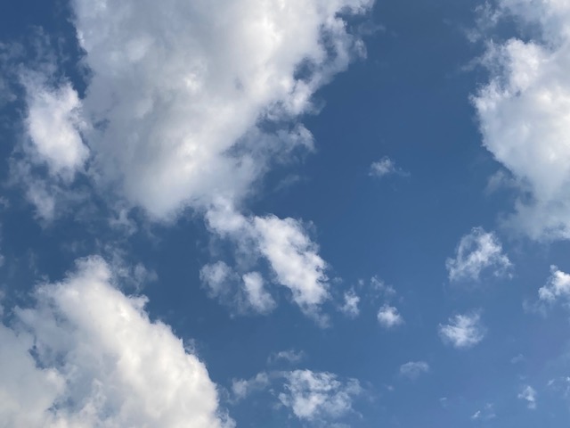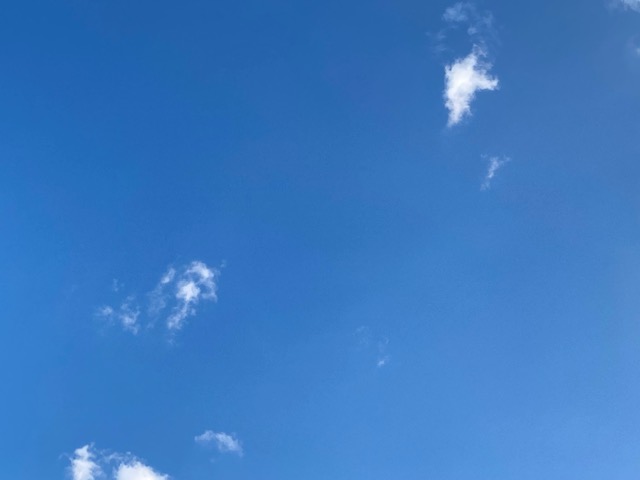 今朝は広く雲が浮かんでいるものの、ところどころ青空も