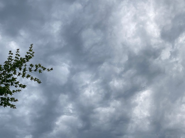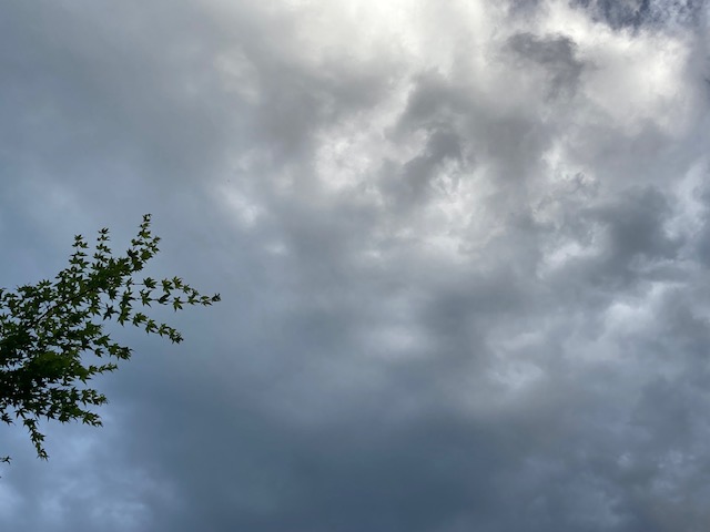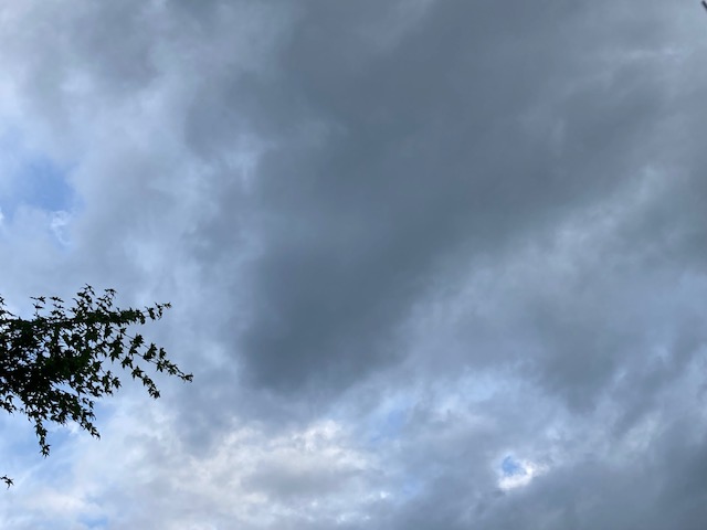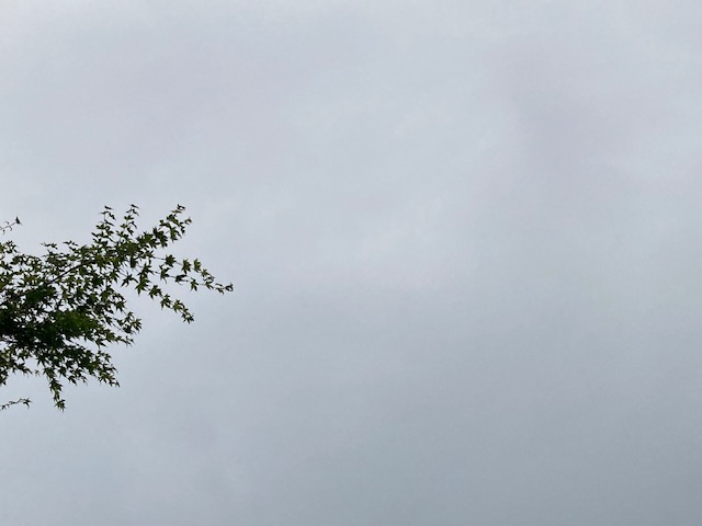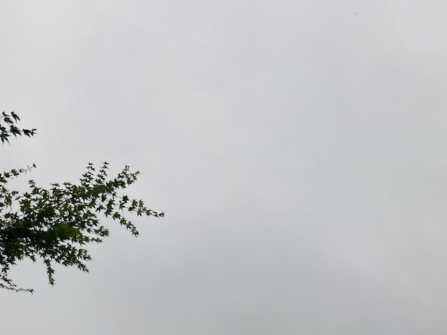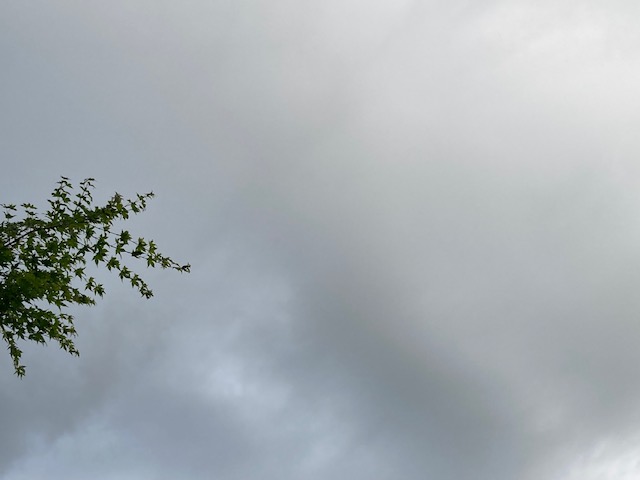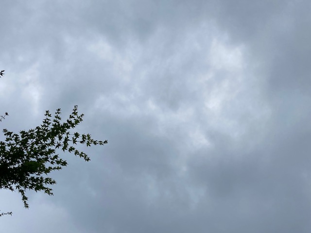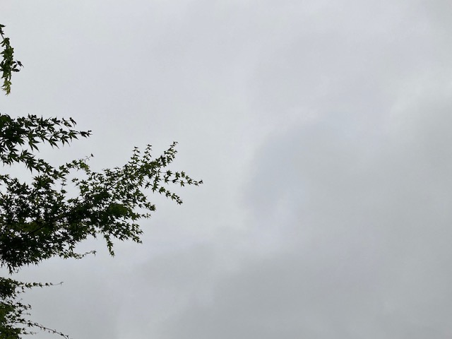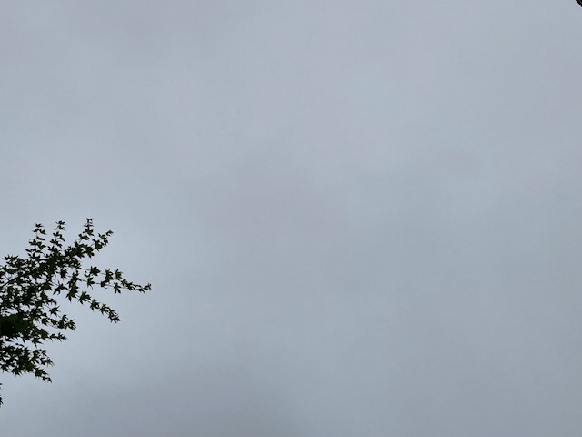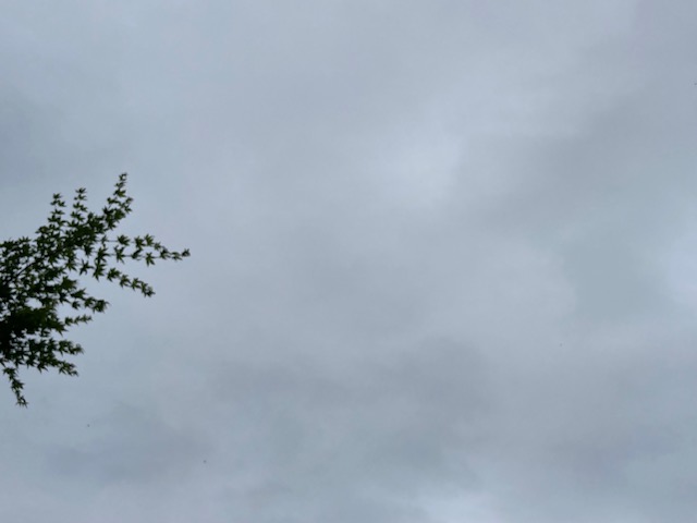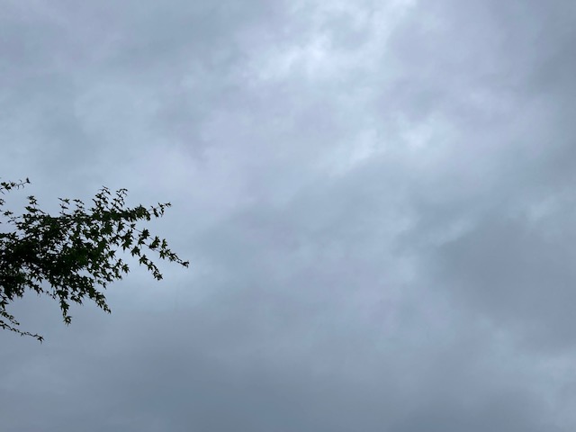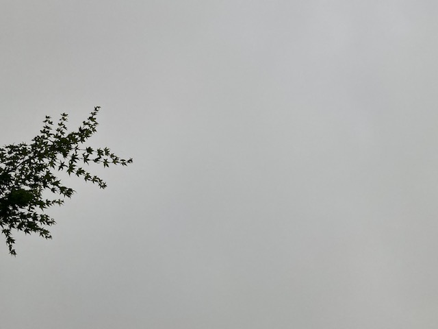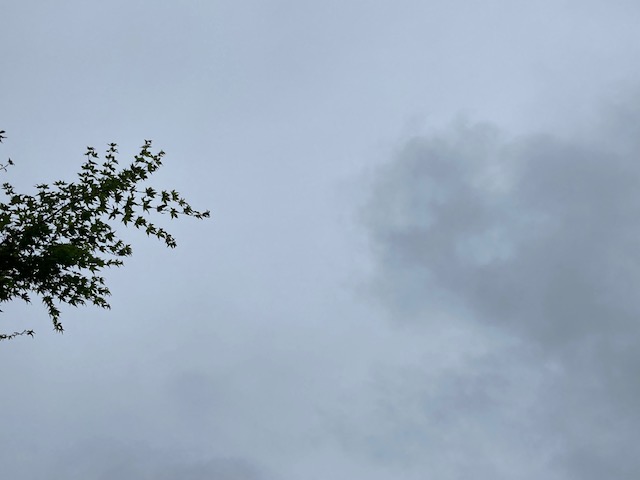 雨雲に覆われ、ぽつぽつと雨が降る朝