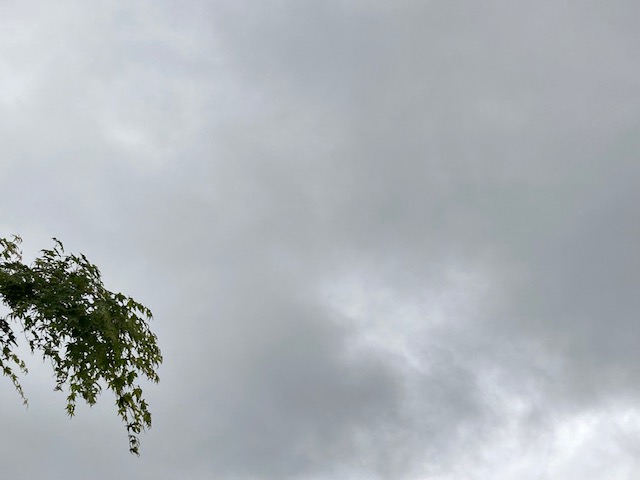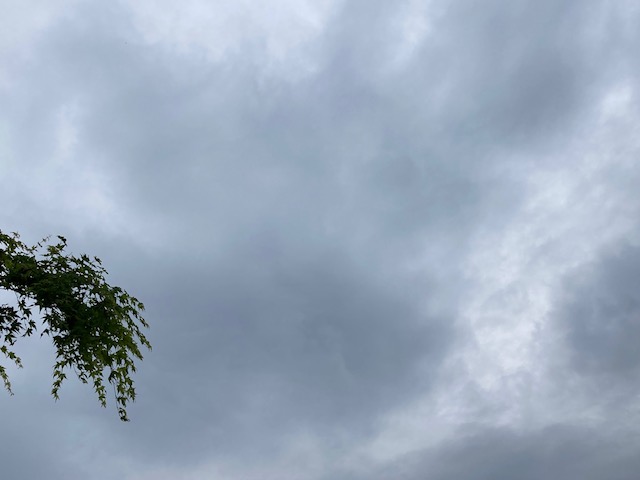 雨雲に覆われ、ぽつぽつと雨が降る朝