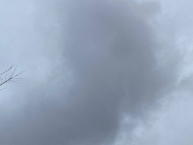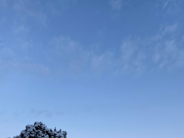 広い範囲に雲が浮かんで、小雪が舞う朝