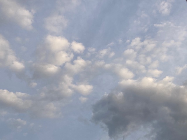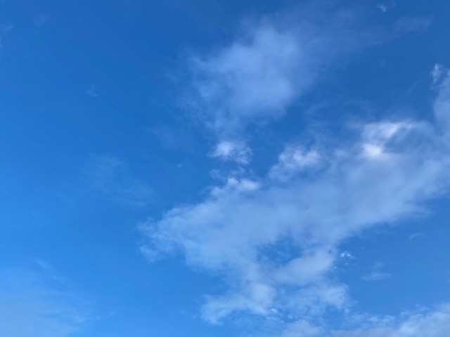 小さな雲がまばらに浮かぶ朝