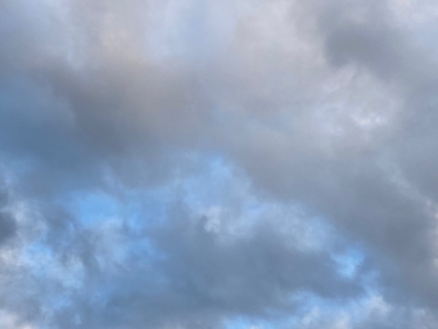 青空も少し見えるものの雲の多い朝