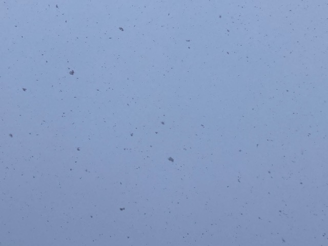 薄い雲がかかり、小雪の降る朝