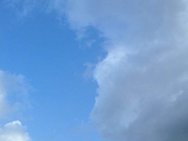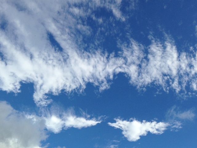 今朝は雲が多く浮かんでいるものの、雲間から青空も