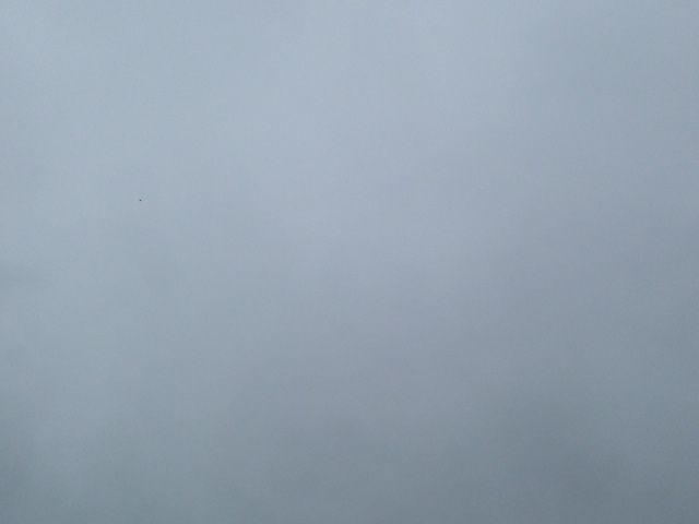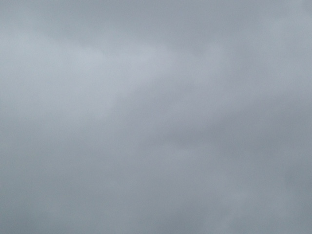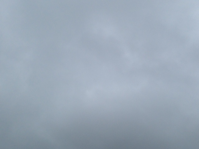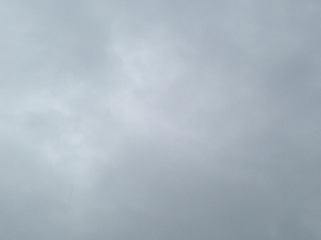 雨雲に覆われ、ポツポツと少し雨が降る朝