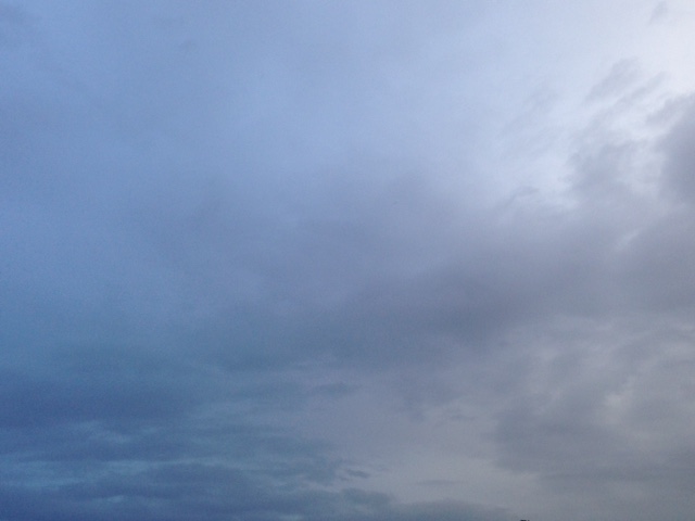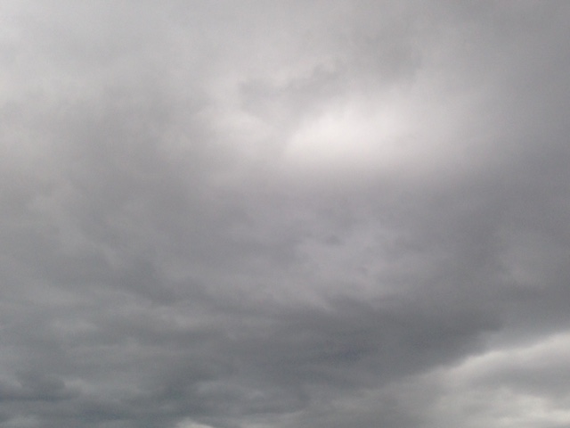雨雲が空を覆い、風雨が強まったり弱まったり
