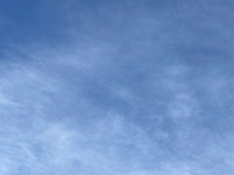 今朝は薄雲のかかる空で、薄雲を通して朝日が差してきています。
