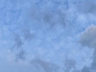 今朝は雲が多く浮かんで、朝日を遮っています。