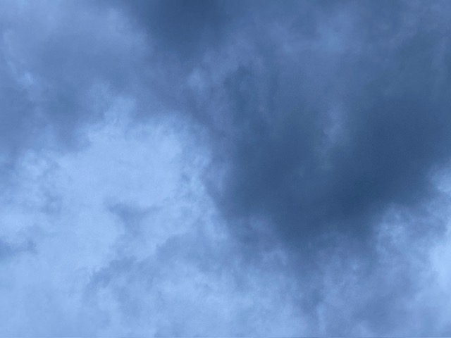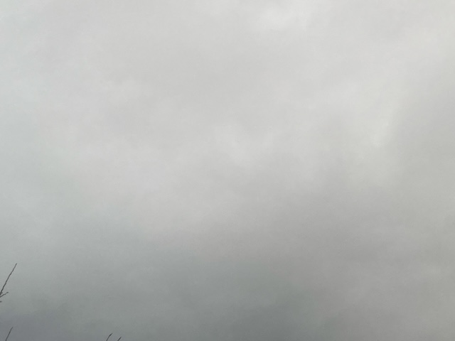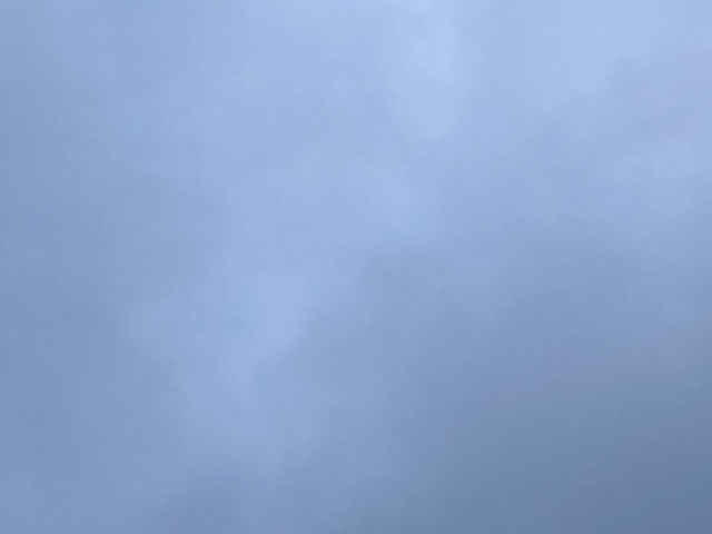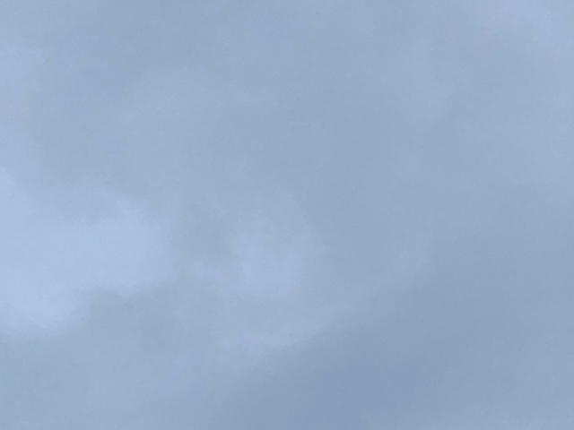 灰色の雲に覆われ、ポツポツと雨が降る朝