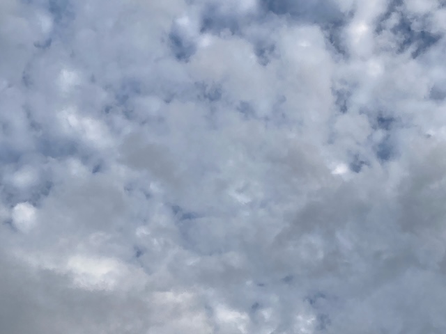今日は雲が多く、にわか雨の可能性があり、すっきりしない空に