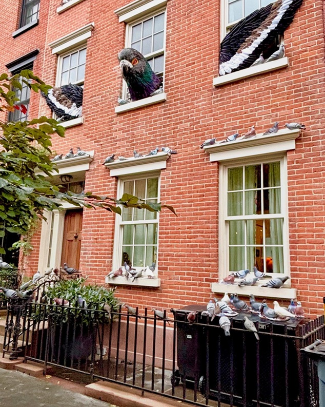 ニューヨークのタウンハウスを占拠するハトのインスタレーション