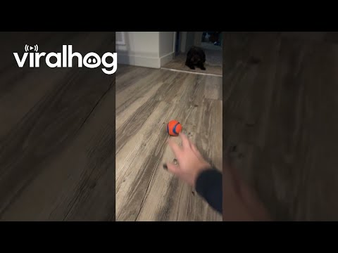 独自に考案したボール遊びゲームをするワンちゃん