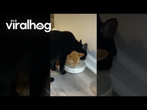 同じボウルで水を飲む猫たち