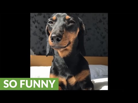 もっと撫でてほしくて飼い主さんに催促するダックスフント