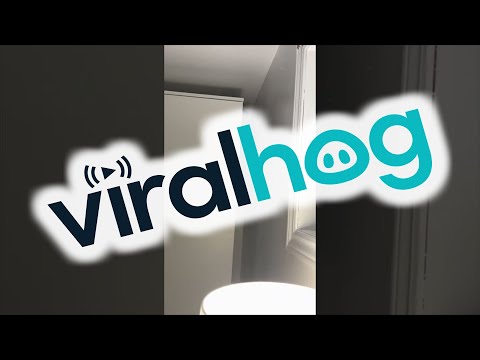 衣装ダンスの上からユニークな方法でおりる猫さん