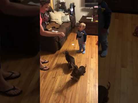 飼い主さんが順番におやつを与えるも、多くもらおうとするワンちゃんが・・・