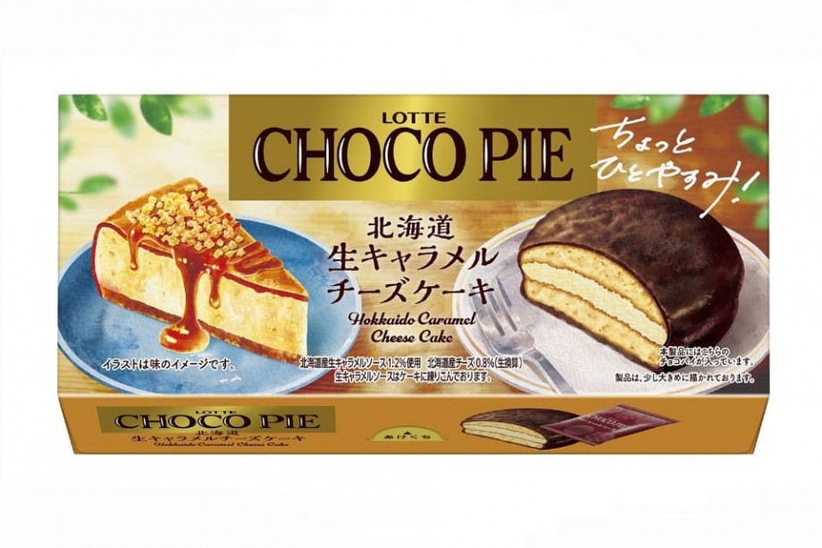 ロッテ、ひと休みするときに食べたい「チョコパイ<北海道生キャラメルチーズケーキ>」発売 (参照記事: えん食べ)